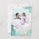 Este cartão de agradecimento de foto de casamento abstrato moderno na praia apresenta fontes modernas e elegantes com caligrafia estilosa, emoldurado por respingos de tinta alcoólica azul-turquesa e dourado.