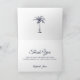 Obrigado seus convidados por ajudá-lo a comemorar seu dia especial com este design simplesmente elegante com sua foto com o roteiro moderno. Personalize-o com sua foto e nomes na frente, juntamente com sua mensagem e nomes no dentro em texto azul marinho juntamente com uma palmeira artística.