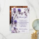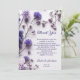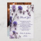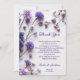 Cartões de agradecimentos de casamento com sua própria foto de casamento de um lado. Do outro lado está uma design elegante com lavandas e flores roxas silvestres.