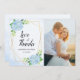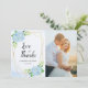 Estes cartões de agradecimento apresentam flores e folhagem azul-aquarela e uma estrutura geométrica moderna de ouro falso. Personalize-os com sua própria foto de casamento, nomes, data de casamento e obrigado que você escreve no verso. Estes cartões de agradecimento fazem parte de uma coleção com vários itens de casamento correspondentes. Visite nossa loja para ver o intervalo de cheios.