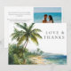 Esses elegantes cartões de agradecimento de casamento com palmeiras na praia tropical podem ser personalizados com sua mensagem de agradecimento e foto especial. Criado por Thisisnotme©