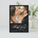 Personalize com 2 das suas fotos favoritas de casamento (uma na frente, outra na parte de trás) e faça este casamento elegante, obrigado nota uma maneira perfeita de expressar sua gratidão por amigos e familiares que compartilharam seu dia especial. O moderno script escrito à mão lê obrigado sobre seus nomes e data. Espaço para mensagem de cheio no verso. Esta é a versão negra formal.
