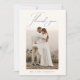 Mostre sua gratidão à sua família e amigos com este elegante cartões de agradecimentos de casamento. Este cartão é personalizável com uma foto dos recém-casados do lado frontal e um belo design floral de aquarela com flores em vários tons de azul empoeirado e creme no lado oposto.