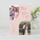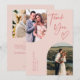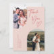 Cartões de agradecimentos de casamento elegante e rústico, com um quadro cor-de-rosa duplo, com texto que diz "obrigado você" com coração. Você pode ter duas fotos na frente e uma no verso.
