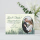 Esses belos cartões de casamento, obrigado, são rústicos, elegantes e na moda. A foto do seu casamento em um quadro em forma oval sobre um fundo de pinheiros verdes da montanha. O título diz "Obrigados e amor" com espaço para uma nota e assinatura personalizadas. Uma maneira maravilhosa de mostrar seu apreço aos amigos e à família por celebrar com você no seu dia especial.