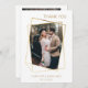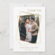 Frente: um falso quadro geométrico dourado. Personalize e adicione uma foto, seus nomes e a data do casamento. Voltar: uma foto de segundo, sua nota de agradecimento e seus nomes.