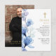 Um cartão de agradecimento de funeral cristão decorado com flores azuis, personalizado com sua própria mensagem de agradecimento e uma foto do ente querido no verso. Criado por Thisisnotme©
