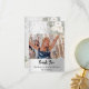 Um cartão de agradecimento de Chá de Noiva moderno. Um fundo com aparência prateada falsa decorado com rosas brancas, flores e renda. Personalize e adicione sua foto na frente e nota de agradecimento no verso.