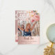 Um cartão de foto moderno de agradecimento de Chuveiro de Noiva. Um fundo gradiente rosa dourado decorado com rosas cor-de-rosa, flores e renda. Personalize e adicione sua foto na frente e nota de agradecimento no verso.