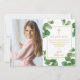 Folhagem de eucalipto, cartão de agradecimento de foto da primeira comunhão com assinatura dourada. Personalize com sua foto especial e mensagem de agradecimento em letras douradas elegantes neste design moderno. Criado por Thisisnotme©