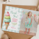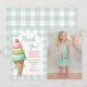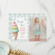 Cartão de agradecimento de foto de festa de aniversário de laço azul de gingham de sorvete