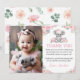 Expresse sua gratidão com este cartão de agradecimento de foto de festa de aniversário floral rosa de coala fofa! Com um adorável coala fofo, detalhes florais rosa delicados e folhagens exuberantes, este cartão mostra lindamente a foto da sua filha enquanto agradece aos convidados por participarem da celebração de aniversário da menina. Um presente doce e memorável para mostrar apreço!