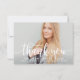 Expresse sua gratidão com este lindo cartão de agradecimento de formatura. Caligrafia branca fluida sobrepõe seu retrato de formatura com seu nome, escola e ano de turma em tipo branco nítido abaixo. Personalize tudo para um cartão lindo que mostre seu retrato favorito.