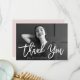 Este cartões de agradecimentos de graduação em chic e na moda apresenta a sua foto na frente, com um script manuscrito moderno e um local para uma mensagem pessoal em uma cor rosa-rosa-pincel-moda no verso.