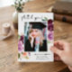 Cartão De Agradecimento Foto de Graduação Floral do Blush Roxo Elegante
