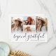 Eterno formando agradecimentos às cartas para enviar para a família e amigos para mostrar sua apreciação sobre eles, ajudando-o a comemorar sua formatura. Apresentando 4 fotos de formando na frente, o título "além de agradecido" em uma fonte elegante de script, no verso está outra foto, e um obrigado personalizado você envia uma mensagem.