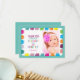 Moderno, kawaii, colorido, cartão de agradecimento de aniversário perfeito pastel com foto da menina e padrão de gato fofo.