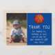 Foto de Menino Bola de Basquete Aniversário Infantil Cartão de Agradecimento. Design moderno e simples com uma bola de basquete. Um ótimo cartão de agradecimento de aniversário para seus amigos e familiares - agradeça a seus convidados por seus presentes, cartões e votos. Adicione sua foto e personalize o cartão com seu nome e texto. Ótimo como cartão de agradecimento para meninos.