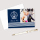 Cartão De Agradecimento Foto de Monograma de Casamento Azul Marinho Náutic