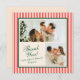 Pequenas faixas verticais vermelhas e creme de coral dão a esta duas fotos de cartões de agradecimentos de feriado uma vibração moderna e chica quando combinada com fontes clássicas em verde-floresta. O backer coordenado apresenta uma fonte personalizada de mensagem e caligrafia mais longa para uma linha de assinatura.