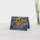 Modelo de cartão de agradecimento com foto elegante e rústica de casamento de outono (orientação horizontal) em quadro-negro azul-marinho escuro com belos buquês de girassóis e cordões de luzes cintilantes. Preencha suas informações nos espaços e envie sua foto para dentro do cartão, você pode optar por personalizá-lo ainda mais, alterando as fontes e cores das letras. ---- O convite é adequado para casamentos elegantes de verão à noite ou casamentos rústicos de outono no campo ou à noite. --- Se precisar de ajuda para personalizá-lo, entre em contato!