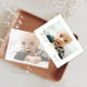 Elegante Dourado Script Baby Photo Cartões de agradecimentos. O verso inclui uma mensagem da família e uma foto de segundo. Clique no botão editar para personalizar este design com suas fotos e detalhes.
