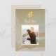 Cartões de agradecimentos de casamento chinês de arte bege moderna com um símbolo de dupla felicidade dourada e uma foto de noiva e noiva no local. No verso está um obrigado personalizado que você escreve num elegante script manuscrito e uma fonte moderna sans serif.