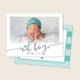 Cartão De Agradecimento Foto do Chá de fraldas Simples Teal Heart Boy Obri