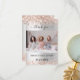 Um cartão de foto moderno de agradecimento do Chá de Noiva. Um fundo com aparência prateada falsa decorado com brilho falso dourado rosa, faíscas. Personalize e adicione sua foto e nota de agradecimento.