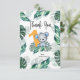 Obrigado sua família e amigos por comemorar o seu primeiro aniversário com esse cartões de agradecimentos de tendências.Design apresenta um urso bonito e o número um em uma paisagem tropical. Personalize com uma foto atrás e sua mensagem.