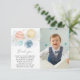 Cartão de agradecimento simples com foto para o primeiro aniversário do seu menino com tema de Planeta/ Espaço. O cartão de agradecimento perfeito para a festa de 1º aniversário do seu menino. Itens combinando disponíveis. Entre em contato conosco se precisar de ajuda para encontrar itens combinando.
