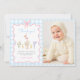 Um Bobo ganha primeiro aniversario azul Gingham Cartões de agradecimentos fotográfico