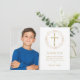 Apresentando uma foto especial, uma delicada folha de ouro floral e crucifixo e seu primeiro obrigado de comunhão sagrado que você coloca na tipografia quic. O reverso apresenta uma delicada folha de ouro falso, cor verde, garland floral e crucifixo. Projetado por Thisnotme©