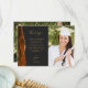 Envie a sua família e amigos um obrigado especial de graduação - você com esses cartões com fotos personalizados. À esquerda, as palavras "obrigado você" aparecem na elegante tipografia de escrita manual dourada sobre um fundo fora do preto sobre uma breve e editável mensagem de obrigados para os convidados de festa de formatura em letra de impressão, com seu nome abaixo. Uma borda agitada de cor laranja queimada, aparada com brilho de ouro falso, decora a borda esquerda. Adicione uma foto vertical à frente e uma segunda foto horizontal à parte traseira da placa.
