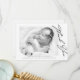Cartões de agradecimentos Fotográfico Elegante Moderno. Design com o obrigado que você escreve, foto do solteiro do bebê, estatísticas de natalidade, data e um nome na frente.