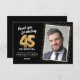Elegante 45ª festa de aniversário, agradeço as cartas com um fundo na moda preto que pode ser mudado para qualquer cor, uma foto da aniversariante / garoto, brilho dourado, 45 balões de hélio dourado, e um obrigado moderno que você modelo é fácil de personalizar.