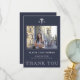 Modelo moderno e elegante marinho azul e branco de cartões de agradecimentos de graduação da escola de enfermagem com sua foto e texto personalizados.