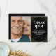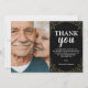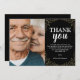 Elegante cartões de agradecimentos de aniversário conjunto para adultos, com um fundo preto na moda, que pode ser mudado para qualquer cor, uma foto personalizada, uma dispersão de brilho dourado e uma nota moderna de agradecimento que é fácil de personalizar.