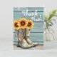 Cartão De Agradecimento Foto Obrigado Rústico País Botas de Girassol