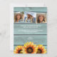 Foto Obrigado Rustic Country Western Sunflower Cards mostra uma ilustração em aquarela de botas de vaquinha cheias de girassóis com o texto "Obrigado" na tipografia moderna e personalizada com sua mensagem personalizada e três fotos no verso. Projetado pelo Evco Studio www.zazzle.com/store/evcostudio