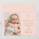 Cartão De Agradecimento Fotografia de Batismo Elegante Rosa Bege Dourado