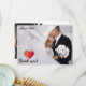 Compartilhe sua gratidão com uma estética sentimental usando este design romântico de agradecimento de casamento. O layout apresenta uma foto personalizada do noivo beijando a noiva, suavizada por uma sobreposição de véu semi-transparente para um efeito sonhador. Um coração desenhado à mão artisticamente em aquarela vermelha e laranja vibrante serve como ponto focal, acentuado por um contorno de esboço preto e uma escrita em caligrafia moderna. Este layout é perfeito para casais que buscam uma maneira única e personalizada de agradecer aos convidados enquanto mostram seu momento de casamento favorito.