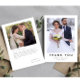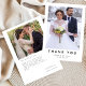 Modelo de cartão de agradecimento de casamento elegante e simples, frente e verso, apresentando uma tipografia manuscrita com um coração entre as palavras. Este script casual e o espaço em branco dão uma sensação simples e minimalista. A mensagem padrão no verso é editável. Uma segunda foto quadrada pode ser adicionada no verso do cartão.