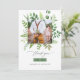 Cartão de agradecimento de casamento com tipografia manuscrita de folhagem da floresta de madeira selvagem e trendy, projetado para ser personalizado de forma rápida e fácil para os seus detalhes. Recomenda-se uma foto quadrada.