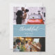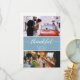 Obrigado seus convidados de casamento de uma forma especial compartilhando algumas de suas fotos favoritas de seu dia especial. Personalize esta obrigado com 2 fotos, seus nomes (os recém-casados), data de casamento e uma mensagem especial no verso. Personalize o texto conforme desejado.Apresentando um bloco de sotaque azul empoeirado e um roteiro moderno "agradecido" com longos traços. Dica: Para convidados especiais personalizem uma das fotos para ter uma foto com estas pessoas honrosas. Pensem em pais, sogros, avós, madrinhas de casamento, o melhor homem, padrinhos de casamento, madrinhas, patrocinadores especiais, padrinhos etc.