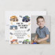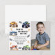 Atenção a todos os pequenos animais de festa! Preparem-se para acelerar a diversão com o nosso cartão de agradecimento 'BUM, CHOQUE É UMA FESTA DE CAMINHÕES MONSTROS' para crianças. Adornado com caminhões monstro adoráveis e vibrantes, uma foto, este agradecimento com tipografia moderna por se juntar à celebração.