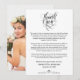 Crie memórias duradouras com nossos cartões personalizados de agradecimento com foto para os convidados do seu casamento. Personalize sua gratidão com esses cartões lindamente projetados que apresentam um espaço para foto personalizável, permitindo que você exiba um momento precioso do seu dia especial. Nossos cartões de agradecimento com foto são a maneira perfeita de expressar sua gratidão e criar uma conexão significativa com seus entes queridos. Com um design elegante e impressão de alta qualidade, esses cartões certamente deixarão uma impressão duradoura. Encomende seus cartões personalizados de agradecimento com foto hoje e compartilhe seus sinceros agradecimentos com um toque pessoal. Por favor, clique no botão personalizar para personalizá-lo com seu texto e foto. Visite minha loja "loveyouart" para outros designs ou similares.