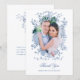 Cartão De Agradecimento French Blue Flowers & Ribbons Wedding Photo