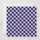 A checkerboard pattern with alternating lavender and black squares fills the image. The repeating geometric design gives a balanced and rhythmic appearance.
