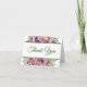 Flores roxas são adornadas com toques de tangerina pálido, rosa e verde na borda superior e inferior deste cartão de agradecimento para todas as ocasiões. Uma borda de linha verde separa as imagens florais do centro branco, e o seu texto personalizado está em verde correspondente no centro. O interior deste cartão fica em branco para a sua própria mensagem.